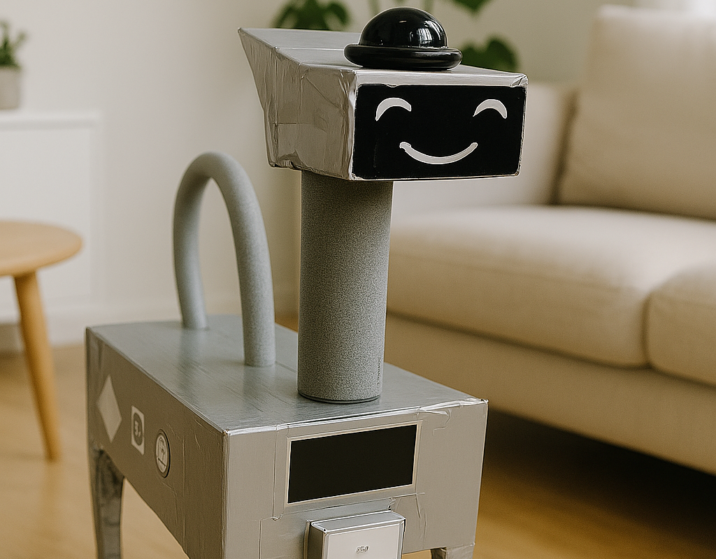 Final version of the Fetchbot prototype in the test room, ready for testing.
